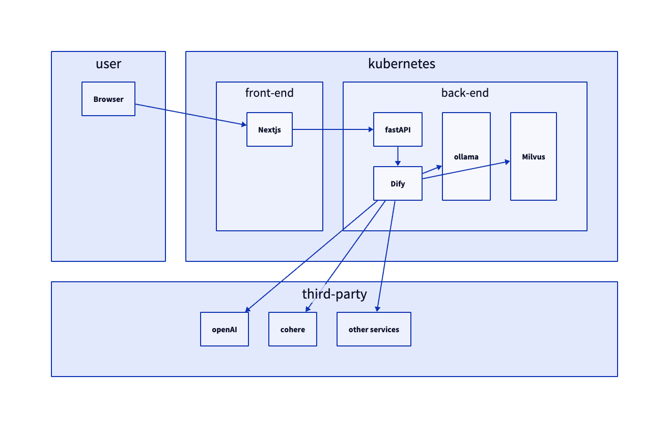default pod/dify-frontend-8599b488dd-b7q9r 0/1 ContainerCreating 0 26s